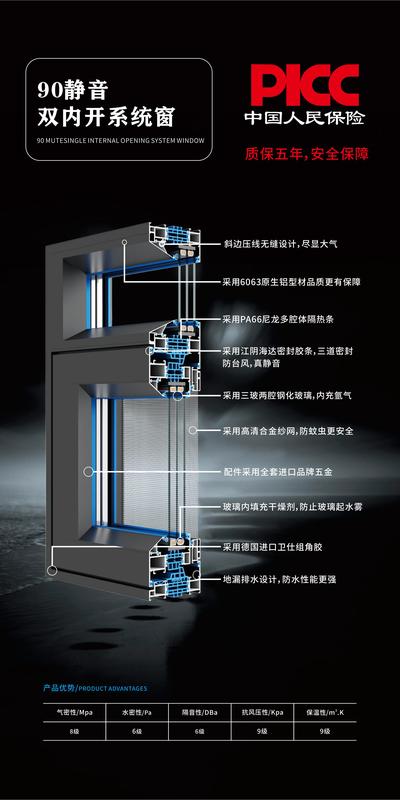 90静音双内开系统窗